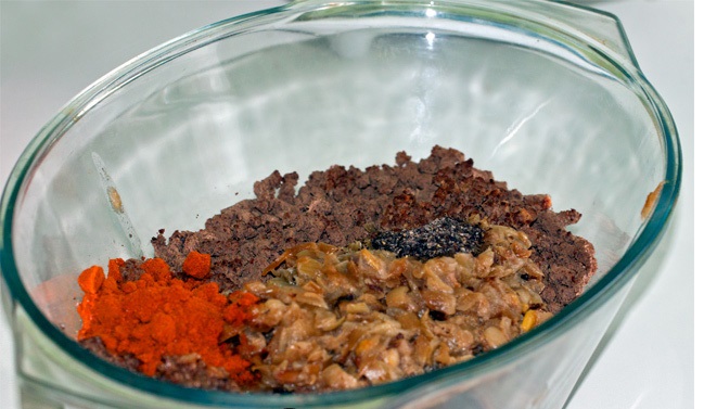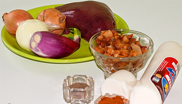 Ceapa se taie marunt si se caleste in untura, la foc mic (sa nu se prinda) , apoi se amesteca cu ficatul si jumarile. Se potrivesc de sare si piper si se amesteca cu boiaua dulce.